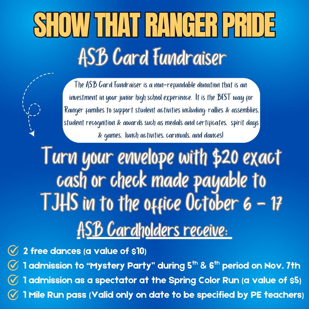 Purchasing an ASB card is one of the best ways for Ranger families to support student activities such as rallies, assemblies, student recognition, spirit games, carnivals, and dances.
